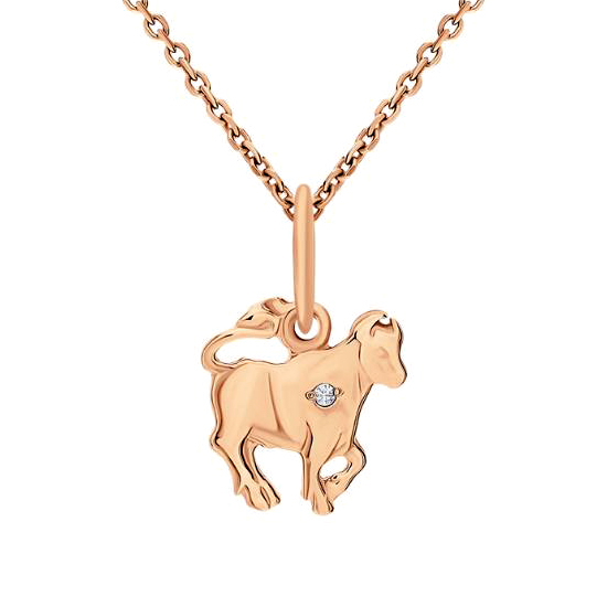 Золотая подвеска с фианитом, артикул 172639 по цене 7952 руб. в наличии в салонах Город Золотой. Изделие имеет внешний вид "Телец", красный цвет, весом 0,47 грамм.
