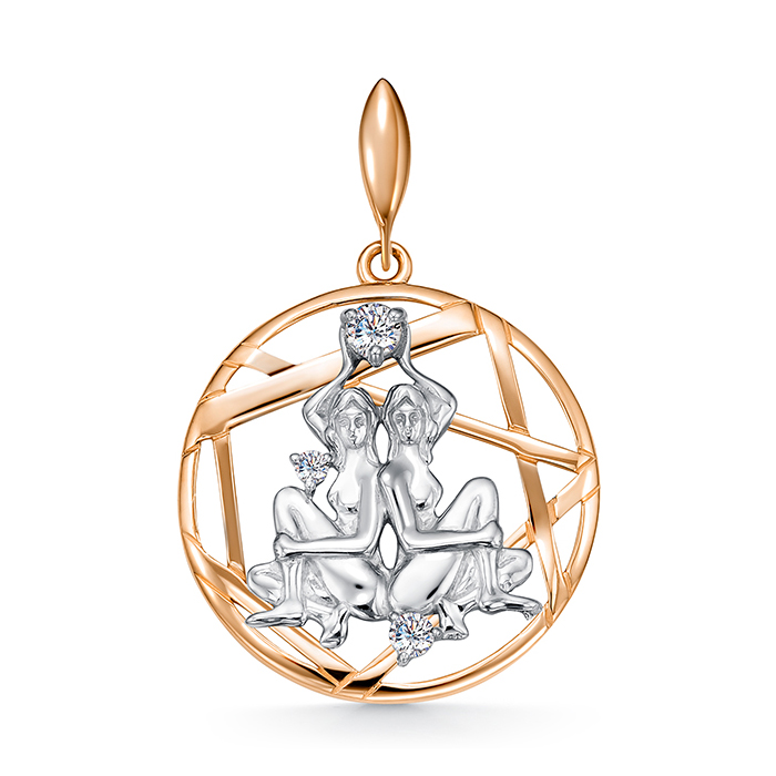 Золотая подвеска с фианитом, артикул 172672 по цене 27584 руб. в наличии в салонах Город Золотой. Изделие имеет внешний вид "Близнецы", красный цвет, весом 1,63 грамм.