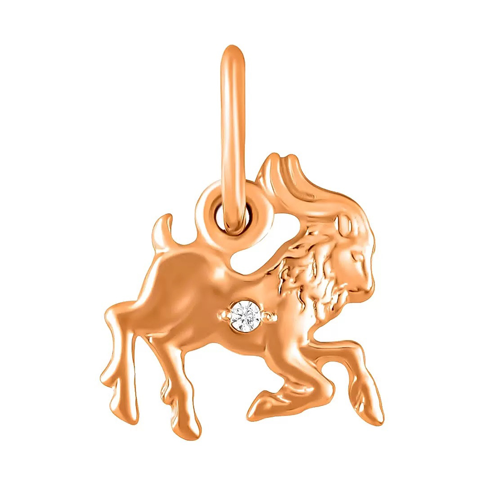 Золотая подвеска с фианитом, артикул 172633 по цене 6094 руб. в наличии в салонах Город Золотой. Изделие имеет внешний вид "Козерог", красный цвет, весом 0,36 грамм.