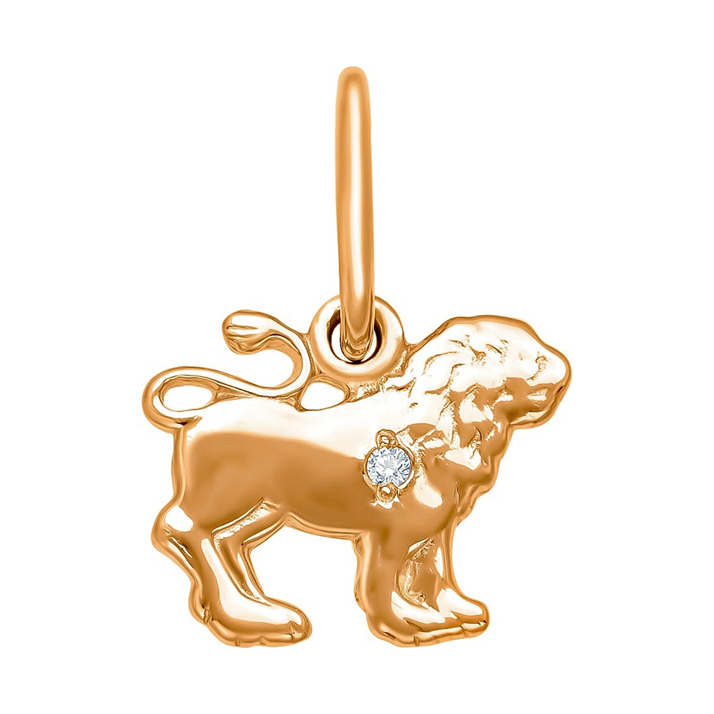 Золотая подвеска с фианитом, артикул 172634 по цене 6601 руб. в наличии в салонах Город Золотой. Изделие имеет внешний вид "Лев", красный цвет, весом 0,39 грамм.