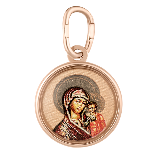 Золотая подвеска с эмалью, артикул 118030 по цене 9986 руб. в наличии в салонах Город Золотой. Изделие имеет внешний вид "БМ Казанская", красный цвет, весом 0,59 грамм.