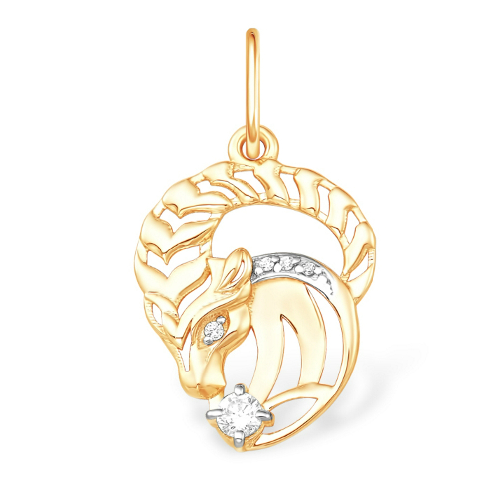 Золотая подвеска с фианитом, артикул 179620 по цене 12691 руб. в наличии в салонах Город Золотой. Изделие имеет внешний вид "Козерог", красный цвет, весом 0,75 грамм.
