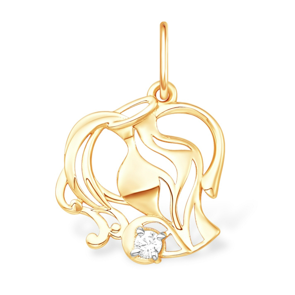 Золотая подвеска с фианитом, артикул 179627 по цене 12072 руб. в наличии в салонах Город Золотой. Изделие имеет внешний вид "Водолей", красный цвет, весом 0,72 грамм.