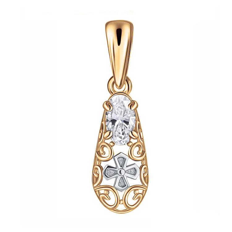 Серебряная подвеска с позолотой с фианитом, артикул 183117 по цене 1000 руб. в наличии в салонах Город Золотой. Изделие имеет внешний вид "Классика/узор", белый цвет, весом 0,62 грамм.