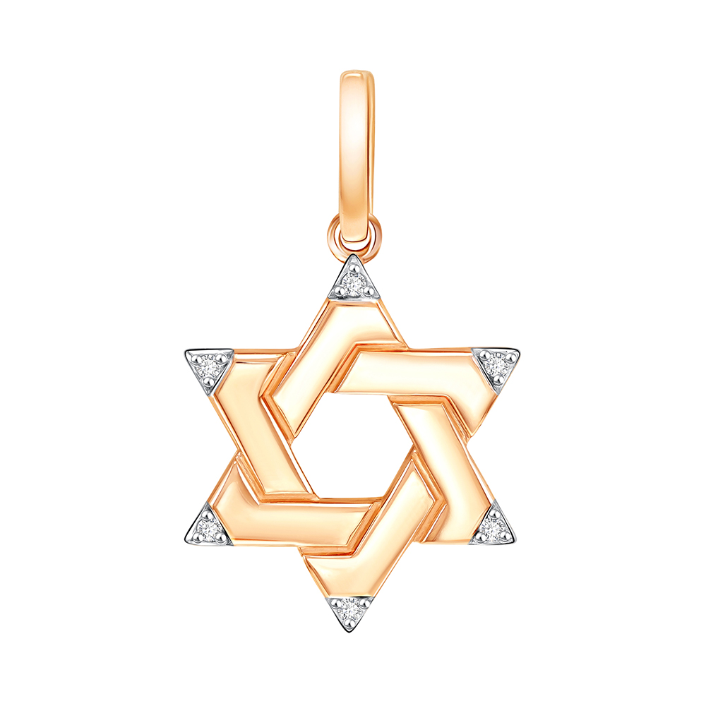 Золотая подвеска с фианитом, артикул 184163 по цене 18197 руб. в наличии в салонах Город Золотой. Изделие имеет внешний вид "Иудейская", красный цвет, весом 1,07 грамм.
