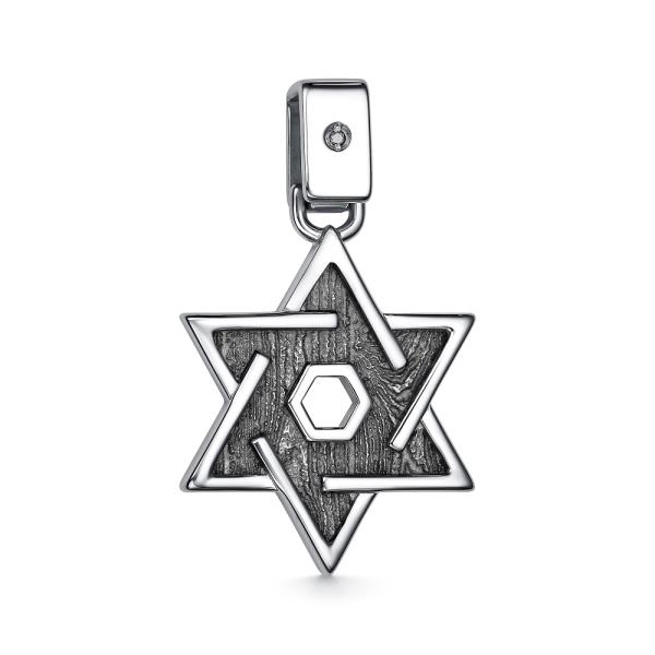 Серебряная подвеска с бриллиантом, артикул 185324 по цене 6190 руб. в наличии в салонах Город Золотой. Изделие имеет внешний вид "Иудейская", белый цвет, весом 4,16 грамм.