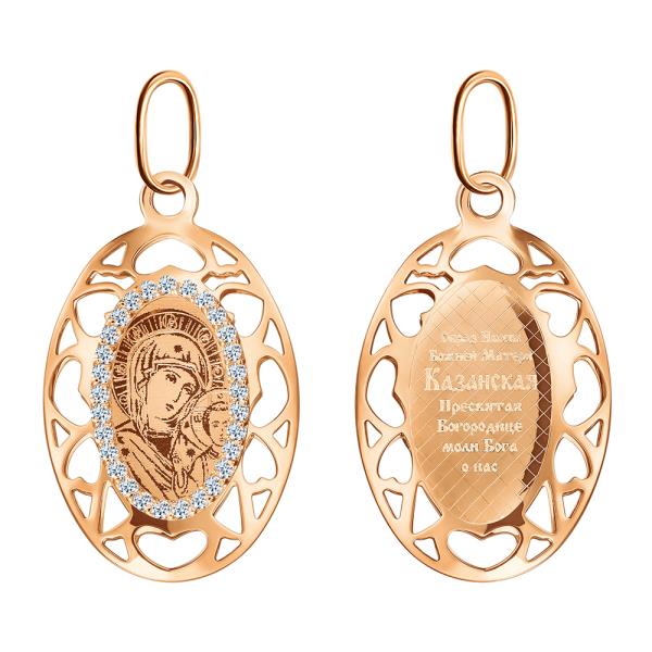 Золотая подвеска с фианитом, артикул 185068 по цене 36047 руб. в наличии в салонах Город Золотой. Изделие имеет внешний вид "БМ Казанская", красный цвет, весом 1,96 грамм.