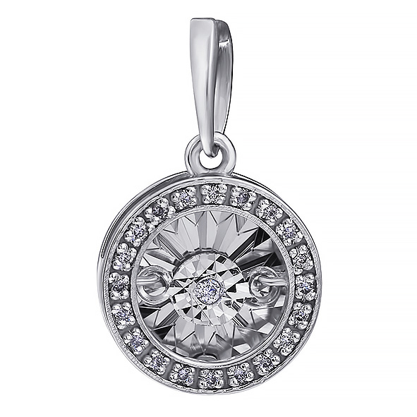 Подвеска из белого золота с бриллиантом, артикул 185883 по цене 63308 руб. в наличии в салонах Город Золотой. Изделие имеет внешний вид "Классика/узор", белый цвет, весом 1,4 грамм.