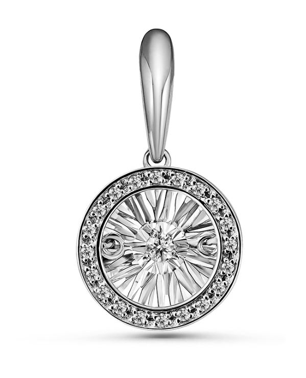 Подвеска из белого золота с бриллиантом, артикул 192143 по цене 85400 руб. в наличии в салонах Город Золотой. Изделие имеет внешний вид "Классика/узор", белый цвет, весом 1,2 грамм.