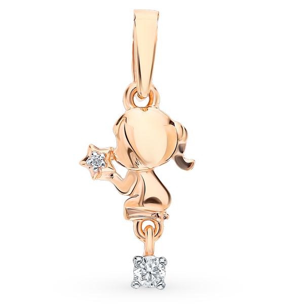 Подвеска из красного золота 585 пробы с фианитом, артикул 125292 по цене 4152 руб. в наличии в салонах Город Золотой. Изделие имеет внешний вид "Классика/узор", красный цвет, весом 0,78 грамм.