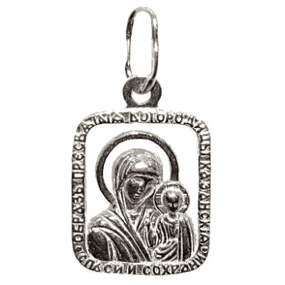 Серебряная подвеска , артикул 127038 по цене 699 руб. в наличии в салонах Город Золотой. Изделие имеет внешний вид "БМ Казанская", белый цвет, весом 1,025 грамм.
