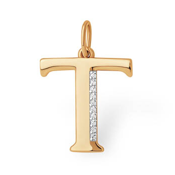 Золотая подвеска с фианитом, артикул 132569 по цене 12772 руб. в наличии в салонах Город Золотой. Изделие имеет внешний вид "Т", красный цвет, весом 0,8 грамм.