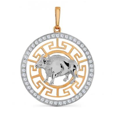 Золотая подвеска с фианитом, артикул 142539 по цене 49585 руб. в наличии в салонах Город Золотой. Изделие имеет внешний вид "Телец", красный цвет, весом 2,93 грамм.