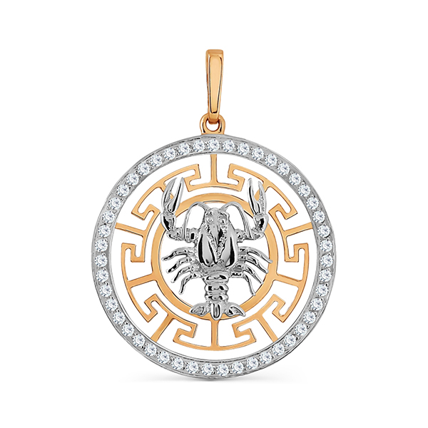 Золотая подвеска с фианитом, артикул 142540 по цене 49077 руб. в наличии в салонах Город Золотой. Изделие имеет внешний вид "Рак", красный цвет, весом 2,9 грамм.