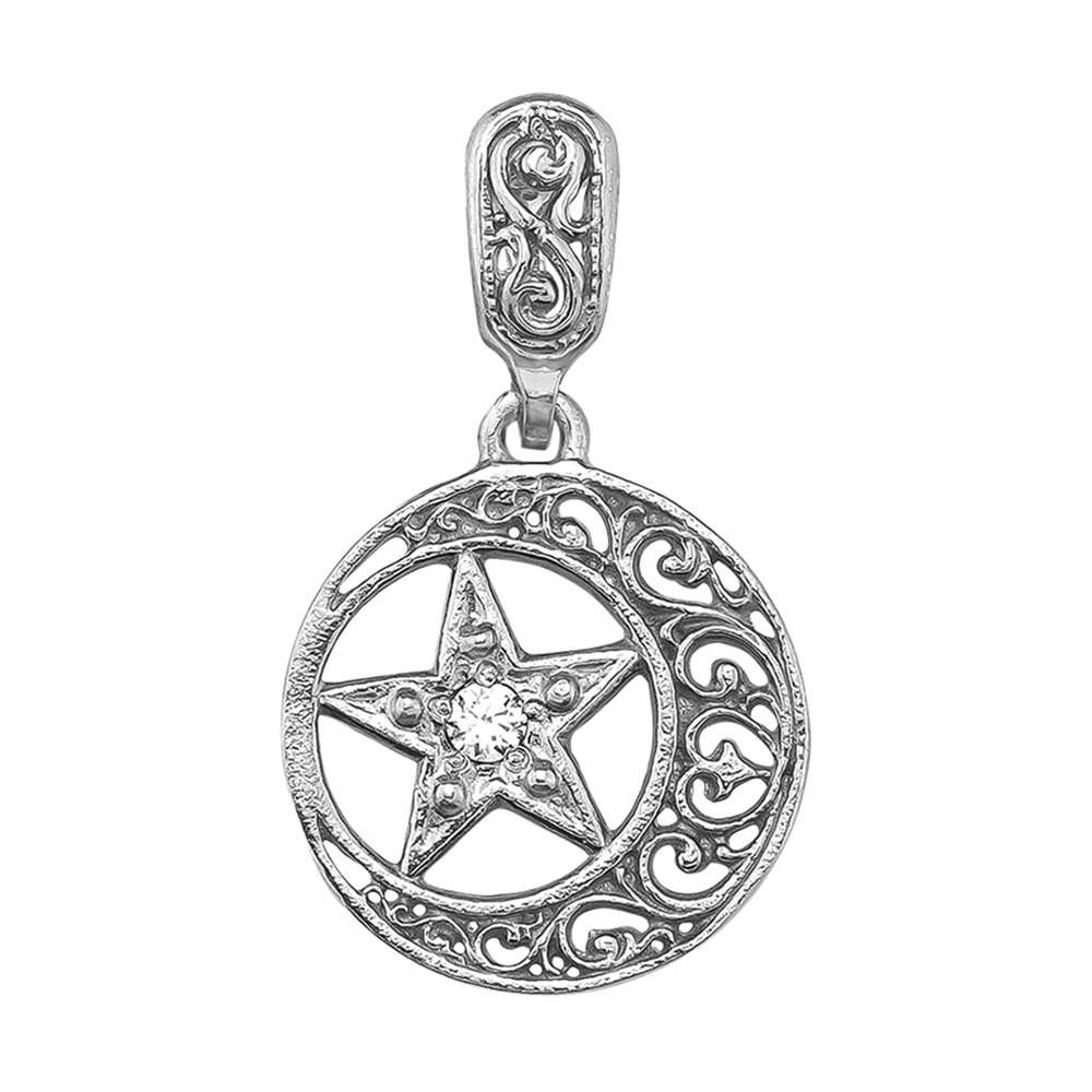 Серебряная подвеска с фианитом, артикул 142762 по цене 2000 руб. в наличии в салонах Город Золотой. Изделие имеет внешний вид "Мусульманская", белый цвет, весом 1,3 грамм.