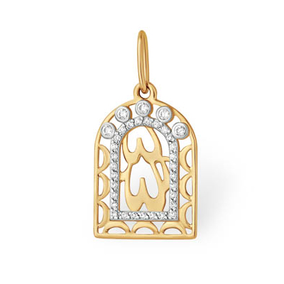 Золотая подвеска с фианитом, артикул 103473 по цене 16415 руб. в наличии в салонах Город Золотой. Изделие имеет внешний вид "Мусульманская", красный цвет, весом 0,97 грамм.