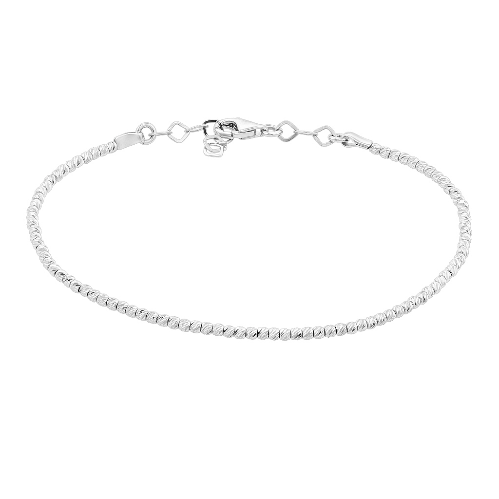 Изящное фантазийное плетение с алмазной огранкой очень красиво смотрится на руке и подходит для любого случая. Плетение состоит из блестящих шариков. Шарики с алмазной огранкой, поэтому ярко сверкают при любом освещении. Застежка дополнена переходными звеньями, позволяющими изменить длину изделия. Толщина браслета 2 мм.