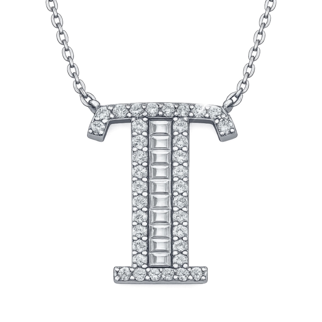 Колье с подвеской буквой из белого золота с бриллиантами-отличное украшение для тех, чье имя начинается с этой буквы.