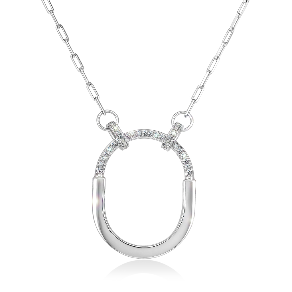 Модель состоит из овальной якорной цепи и оригинальной подвески, выполненной в актуальной стилистике замковой формы, вдохновленной смелыми тенденциями современной ювелирной моды. Дизайн сочетает строгую геометрию и элегантные линии.