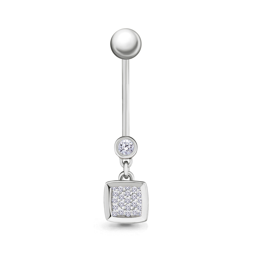 Серьга д/пирсинга из серебра с фианитом, артикул 173452 по цене 1590 руб. в наличии в салонах Город Золотой. Изделие имеет внешний вид "В пупок", белый цвет, весом 1,09 грамм.