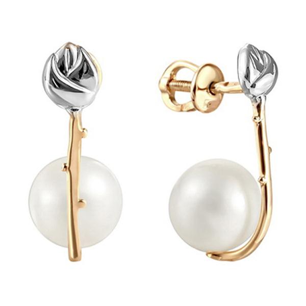 Золотые cерьги пусеты (гвоздики) с жемчугом, артикул 146585 по цене 22245 руб. в наличии в салонах Город Золотой. Изделие имеет внешний вид "Классика/узор", красный цвет, весом 3,49 грамм.