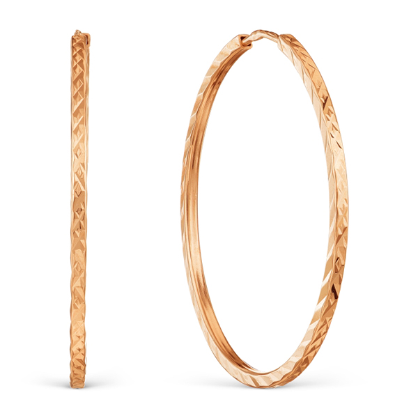 Золотые cерьги конго, артикул 133280 по цене 23524 руб. в наличии в салонах Город Золотой. Изделие имеет внешний вид "Алмазная грань", красный цвет, весом 1,39 грамм.