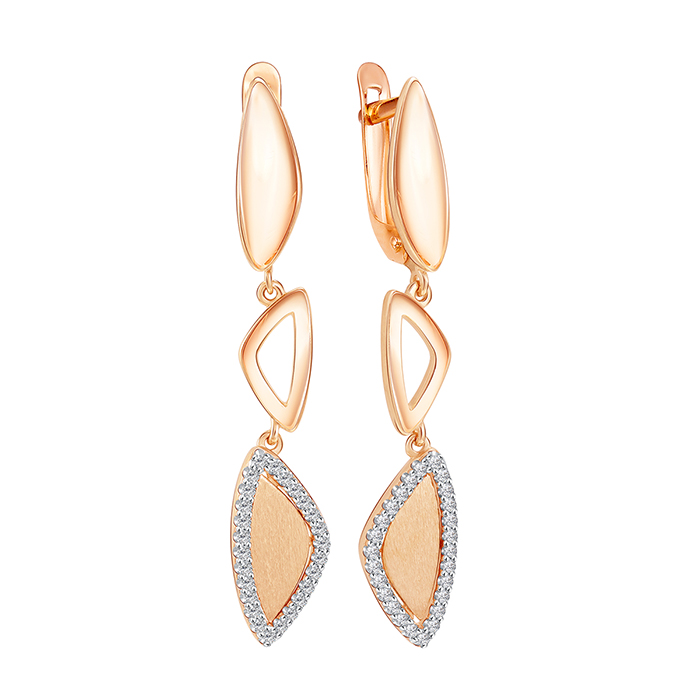 Золотые cерьги висячие с фианитом, артикул 148597 по цене 70228 руб. в наличии в салонах Город Золотой. Изделие имеет внешний вид "С подвесом", красный цвет, весом 4,15 грамм.