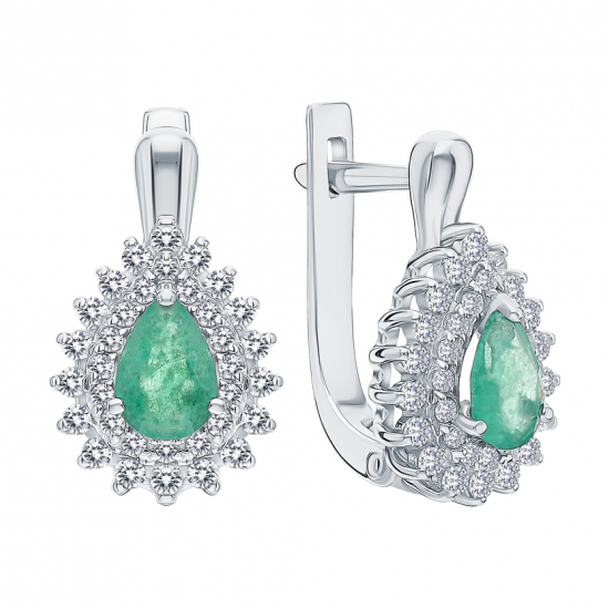 Серебряные cерьги классические с изумрудом, артикул 148966 по цене 10790 руб. в наличии в салонах Город Золотой. Изделие имеет внешний вид "Классика/узор", белый цвет, весом 2,85 грамм.