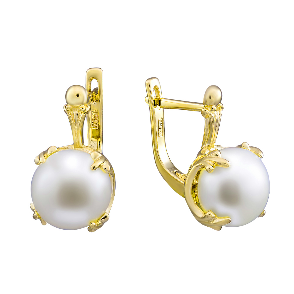 Серьги из желтого золота с жемчугом, артикул 101258 по цене 124684 руб. в наличии в салонах Город Золотой. Изделие имеет внешний вид "Каст", желтый цвет, весом 5,66 грамм.