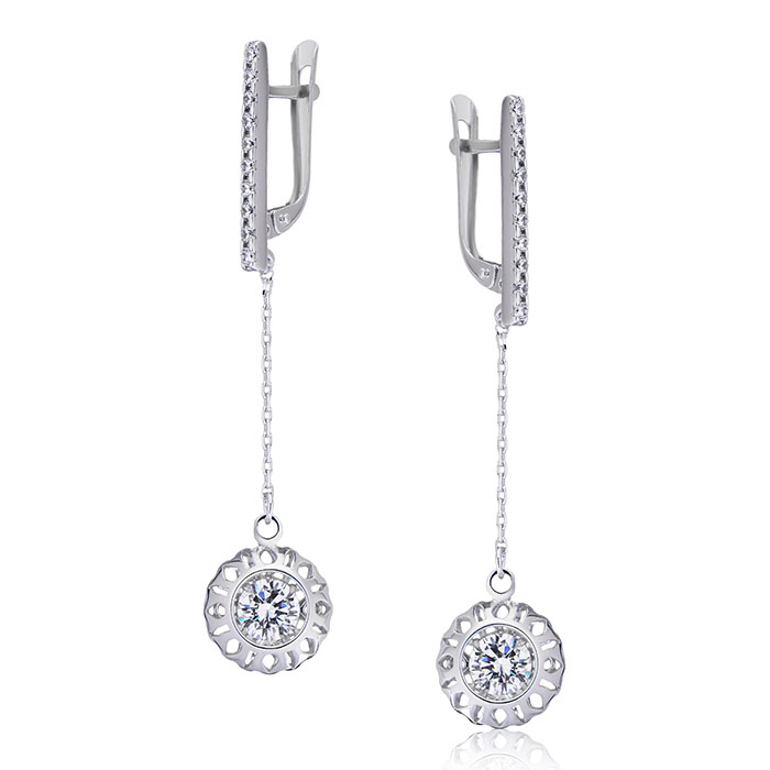 Серебряные cерьги висячие с фианитом, артикул 155761 по цене 2590 руб. в наличии в салонах Город Золотой. Изделие имеет внешний вид "С подвесом", белый цвет, весом 3,53 грамм.