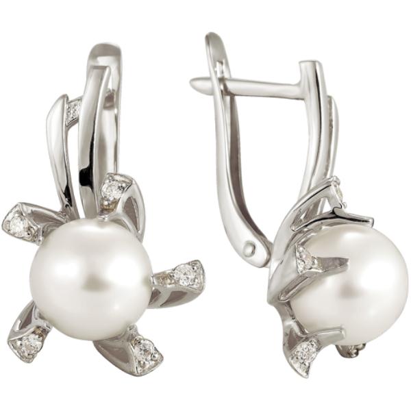 Серебряные cерьги классические с жемчугом, артикул 43748 по цене 3370 руб. в наличии в салонах Город Золотой. Изделие имеет внешний вид "Классика/узор", белый цвет, весом 4,618 грамм.