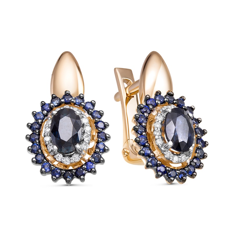 Золотые cерьги классические с сапфиром, артикул 158835 по цене 203347 руб. в наличии в салонах Город Золотой. Изделие имеет внешний вид "Классика/узор", красный цвет, весом 4,34 грамм.