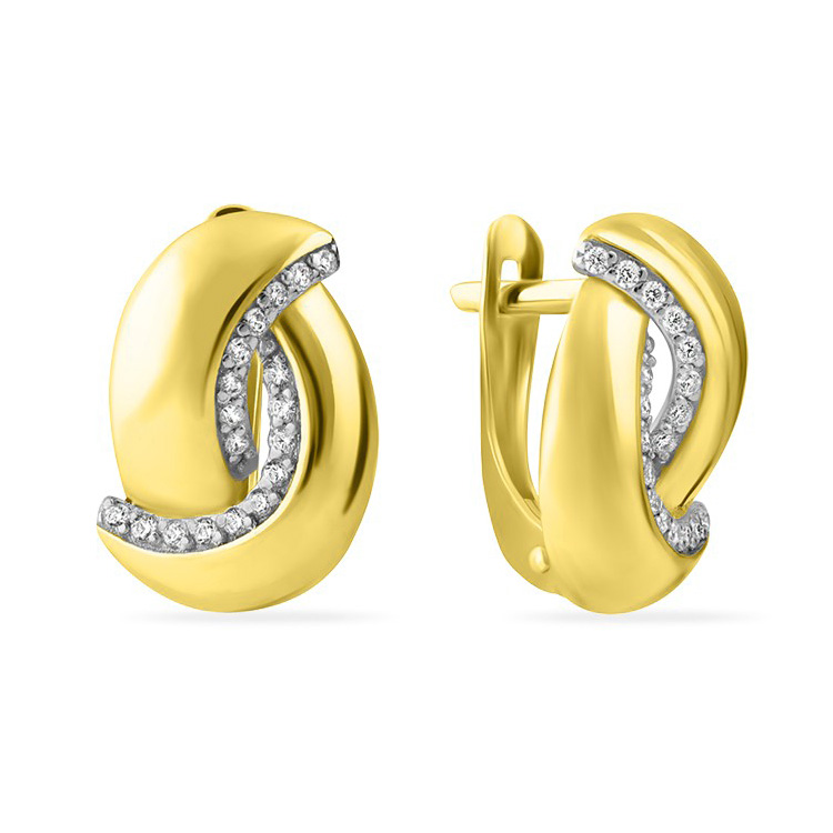 Серьги классические из желтого золота с фианитом, артикул 158784 по цене 40446 руб. в наличии в салонах Город Золотой. Изделие имеет внешний вид "Классика/узор", желтый цвет, весом 2,39 грамм.