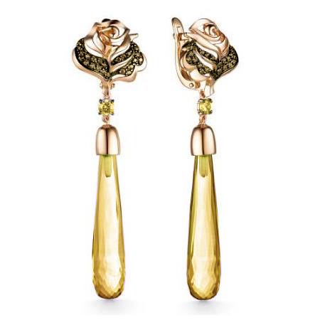 Золотые cерьги висячие с цитрином, артикул 110485 по цене 54597 руб. в наличии в салонах Город Золотой. Изделие имеет внешний вид "С подвесом", красный цвет, весом 7,63 грамм.