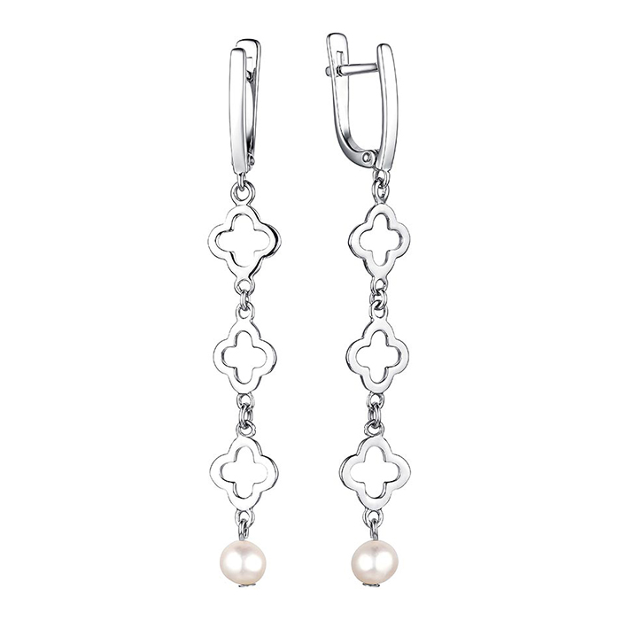 Серебряные cерьги висячие с жемчугом, артикул 160235 по цене 2990 руб. в наличии в салонах Город Золотой. Изделие имеет внешний вид "С подвесом", белый цвет, весом 3,18 грамм.