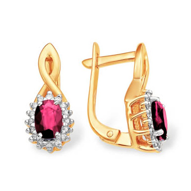 Золотые cерьги классические с рубином, артикул 160722 по цене 126347 руб. в наличии в салонах Город Золотой. Изделие имеет внешний вид "Классика/узор", красный цвет, весом 3,74 грамм.