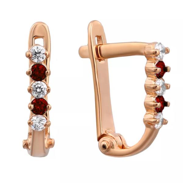 Золотые cерьги с фианитом, артикул 163547 по цене 9524 руб. в наличии в салонах Город Золотой. Изделие имеет внешний вид "Дорожка", красный цвет, весом 0,93 грамм.