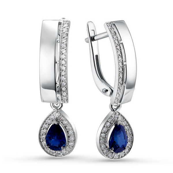 Серьги висячие из белого золота с сапфиром, артикул 164004 по цене 164847 руб. в наличии в салонах Город Золотой. Изделие имеет внешний вид "С подвесом", белый цвет, весом 3,89 грамм.