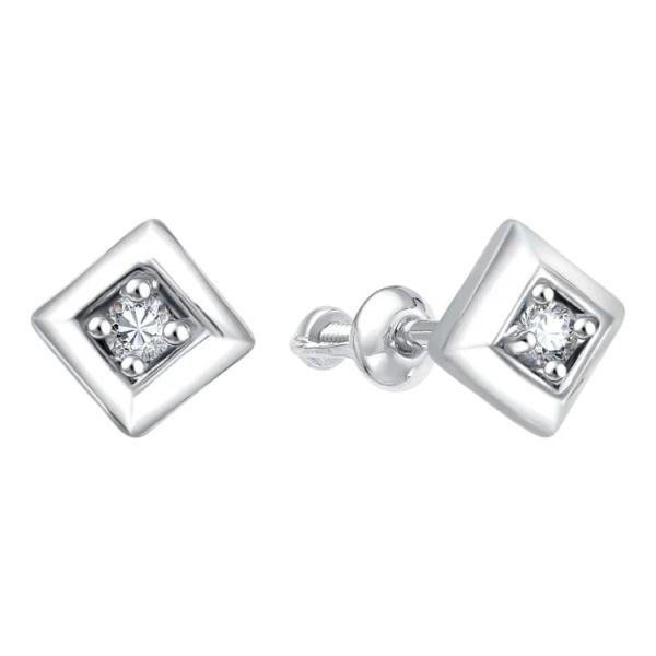 Серебряные cерьги пусеты (гвоздики) с фианитом, артикул 165332 по цене 700 руб. в наличии в салонах Город Золотой. Изделие имеет внешний вид "Каст", белый цвет, весом 0,82 грамм.