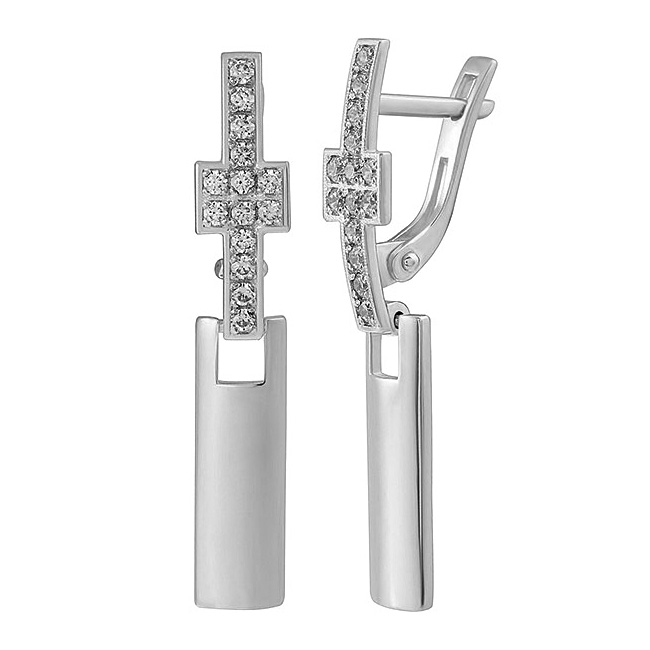Серьги висячие из белого золота с фианитом, артикул 165906 по цене 48566 руб. в наличии в салонах Город Золотой. Изделие имеет внешний вид "С подвесом", белый цвет, весом 2,87 грамм.