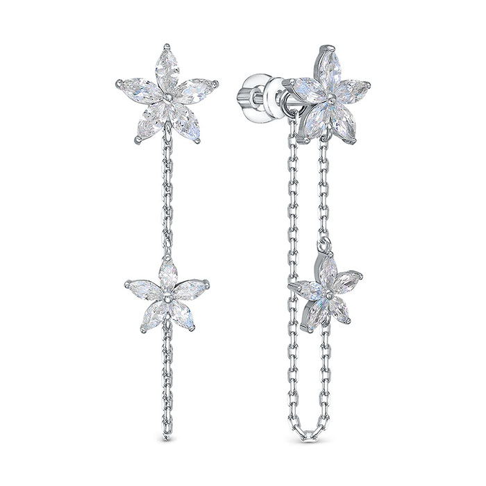 Серебряные cерьги пусеты (гвоздики) с фианитом, артикул 165995 по цене 4790 руб. в наличии в салонах Город Золотой. Изделие имеет внешний вид "С подвесом", белый цвет, весом 3,04 грамм.