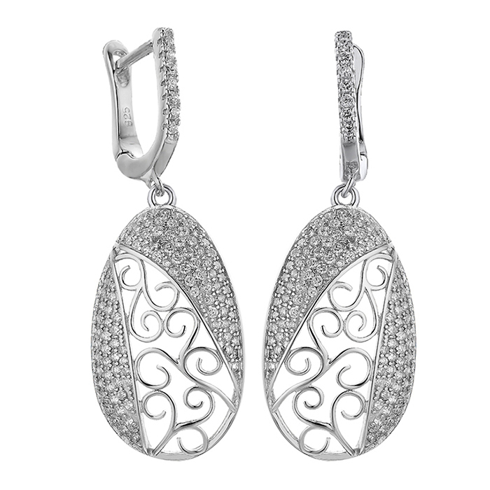 Серебряные cерьги висячие с фианитом, артикул 165917 по цене 7022 руб. в наличии в салонах Город Золотой. Изделие имеет внешний вид "С подвесом", весом 6,3 грамм.