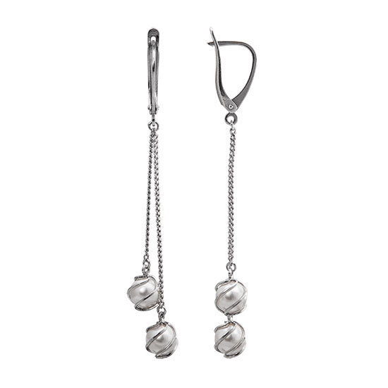 Серебряные cерьги висячие с жемчугом, артикул 166026 по цене 5490 руб. в наличии в салонах Город Золотой. Изделие имеет внешний вид "С подвесом", белый цвет, весом 5,61 грамм.