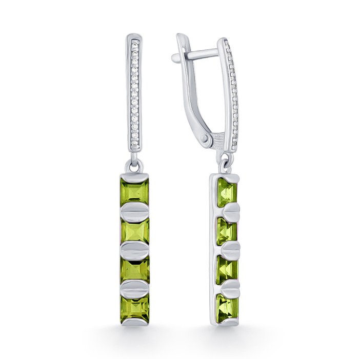 Серебряные cерьги висячие с хризолитом, артикул 166039 по цене 5490 руб. в наличии в салонах Город Золотой. Изделие имеет внешний вид "С подвесом", белый цвет, весом 4,21 грамм.