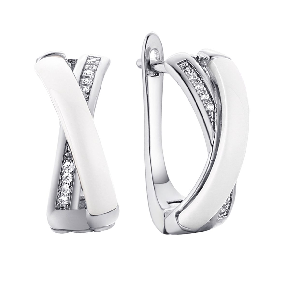 Серебряные cерьги классические с керамикой, артикул 166454 по цене 6490 руб. в наличии в салонах Город Золотой. Изделие имеет внешний вид "Классика/узор", белый цвет, весом 5,5 грамм.
