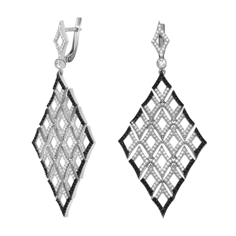 Серебряные cерьги висячие с фианитом, артикул 166904 по цене 9490 руб. в наличии в салонах Город Золотой. Изделие имеет внешний вид "С подвесом", белый цвет, весом 15,79 грамм.