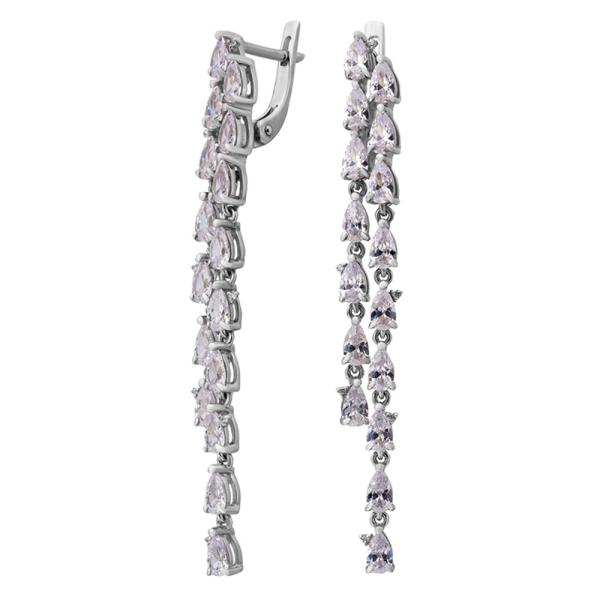 Серебряные cерьги висячие с фианитом, артикул 168541 по цене 12190 руб. в наличии в салонах Город Золотой. Изделие имеет внешний вид "С подвесом", белый цвет, весом 8,83 грамм.