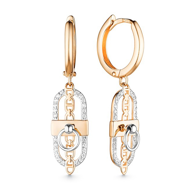 Золотые cерьги висячие с фианитом, артикул 168638 по цене 47044 руб. в наличии в салонах Город Золотой. Изделие имеет внешний вид "С подвесом", красный цвет, весом 2,78 грамм.