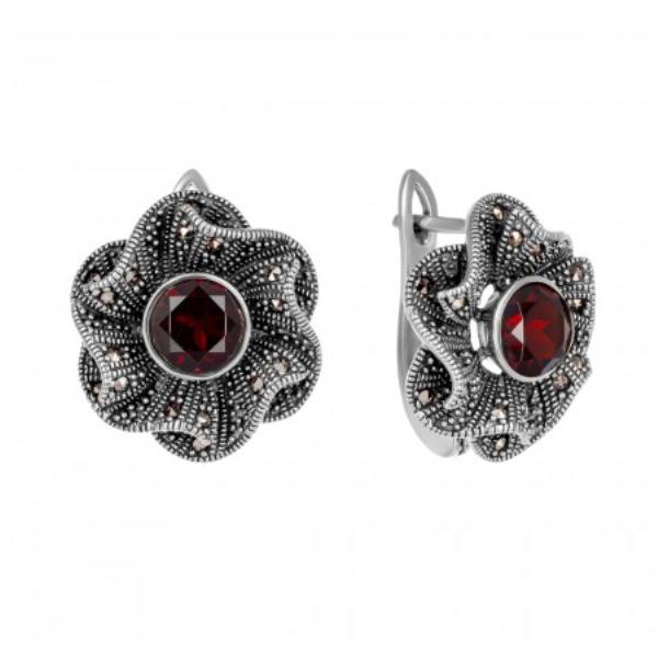 Серебряные cерьги классические с гранатом, артикул 168705 по цене 15190 руб. в наличии в салонах Город Золотой. Изделие имеет внешний вид "Классика/узор", белый цвет, весом 11,12 грамм.