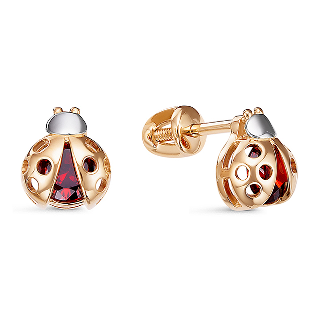 Золотые cерьги пусеты (гвоздики) с фианитом, артикул 168940 по цене 18953 руб. в наличии в салонах Город Золотой. Изделие имеет внешний вид "Классика/узор", красный цвет, весом 1,12 грамм.